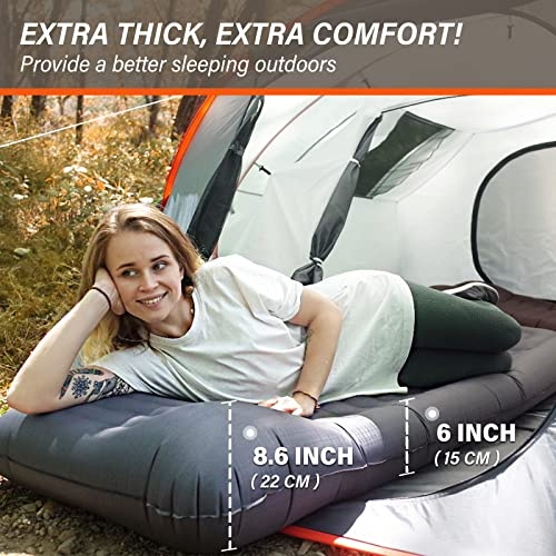 Double Sleeping Pad for Camping, Extra Thick 6" Camping Mattress 2 Person with Pillow Built-in Foot Pump, Inflatable Sleeping Mat for Camp, Backpacking, Hiking, Traveling